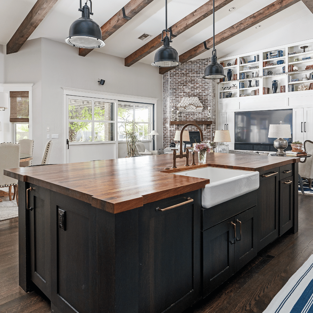 KITCHEN ISLAND WITH WOOD COUNTERTOP