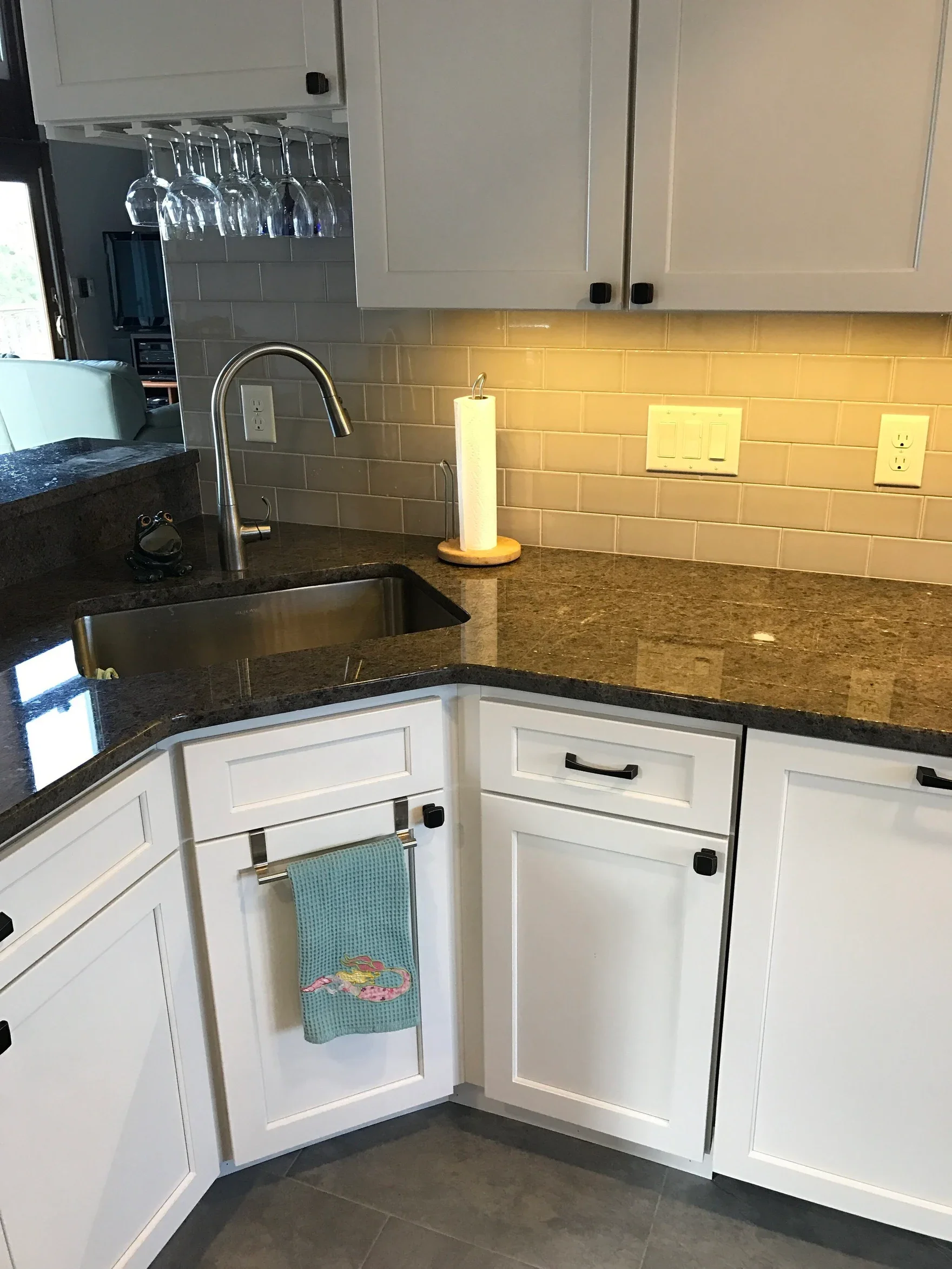 SINK IN CORNER OF KITCHEN CABINETS